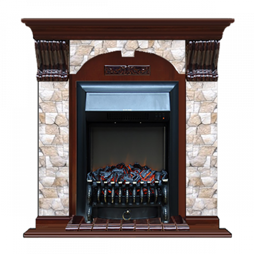 Каминокомплект Glenrich Арочный Арбат (красное дерево)+Fobos Black